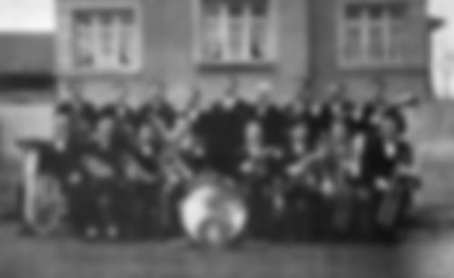 Dem unter dem Namen „Musik-Fritz“ bekannten Inhaber des Musikinstrumenten-Geschäftes Eduard Fritz aus Heidelberg war es zu verdanken, daß das fast unüberwindliche Problem der Beschaffung von Instrumenten einigermaßen zufriedenstellend gelöst werden konnte. Herr Fritz hat sich in den ersten Monaten auch freiwillig als Dirigent und Lehrmeister zur Verfügung gestellt. Nachdem die ersten Töne und merkwürdigen Laute im Steinbruch des Gemeindewaldes geübt waren, trauten sich die Musiker zu ihren Übungsabenden nun in das Gründungslokal, die „Bahnhofsrestauration“. Bald wurden auch die ersten Auftritte gewagt, und die Kapelle machte gute Fortschritte.